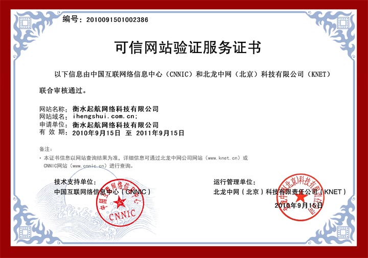 熱烈慶祝衡水起航網(wǎng)絡(luò)科技有限公司順利通過(guò)CNNIC可信網(wǎng)站驗(yàn)證!